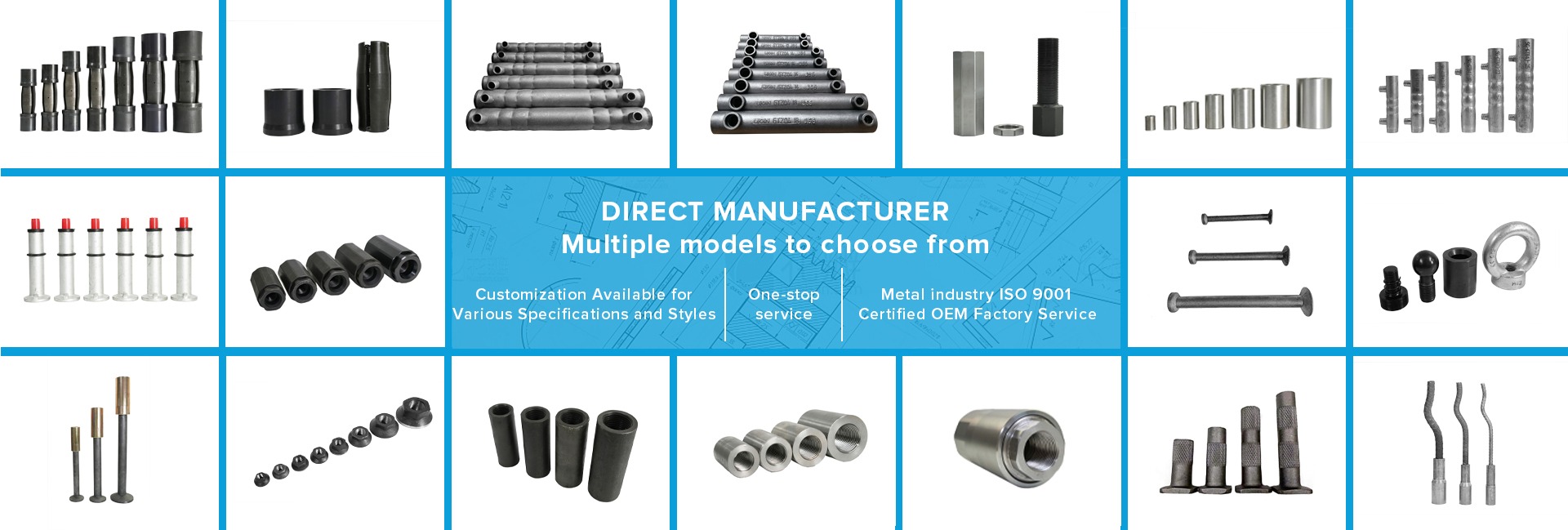 Productos principales:Acoplador de barras de refuerzo, pieza incrustada de hormigón, anclaje de barras de refuerzo, equipo de prensado de mangas de barras de refuerzo